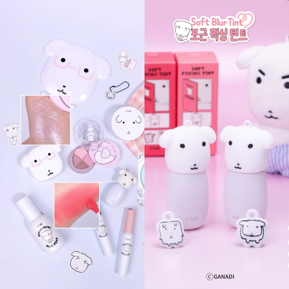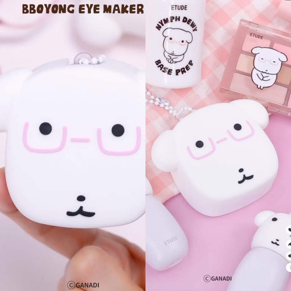 화이트 패키지에 가나디 캐릭터가 들어가 있고 일부 제품은 키링 형태 디자인도 보입니다. 그래서 에뛰드 가나디는 화장품이라기보다는 굿즈 느낌이 조금 나는 라인 같기도 합니다.
